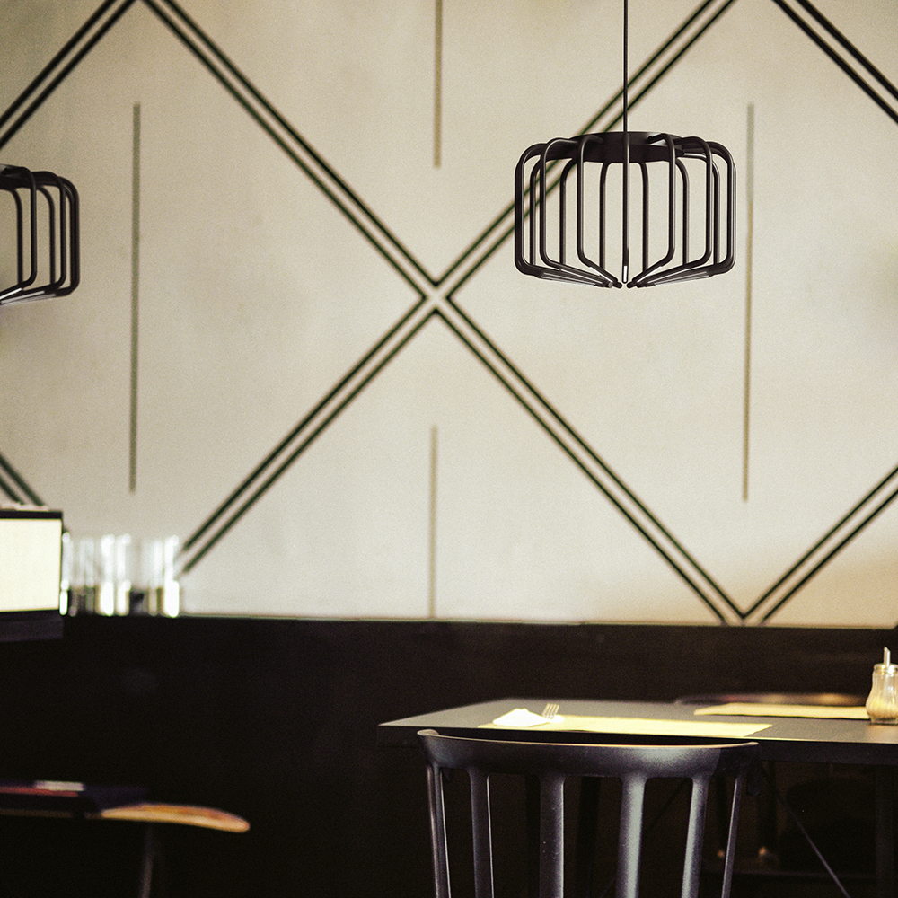 Gabia representa la fuerte apuesta de Luzfin por el LED, integrado en los extremos de cada uno de los brazos que conforman la lámpara en formato tira.